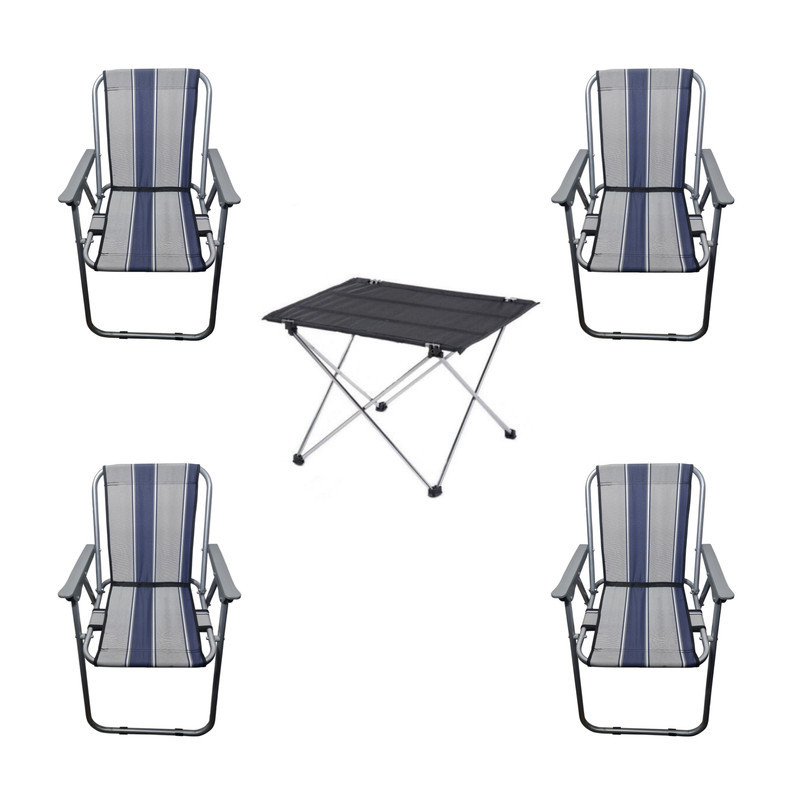 ست چهار نفره صندلی ساحلی تاشو 9 فنر و میز مسافرتی تاشو(پس کرایه)