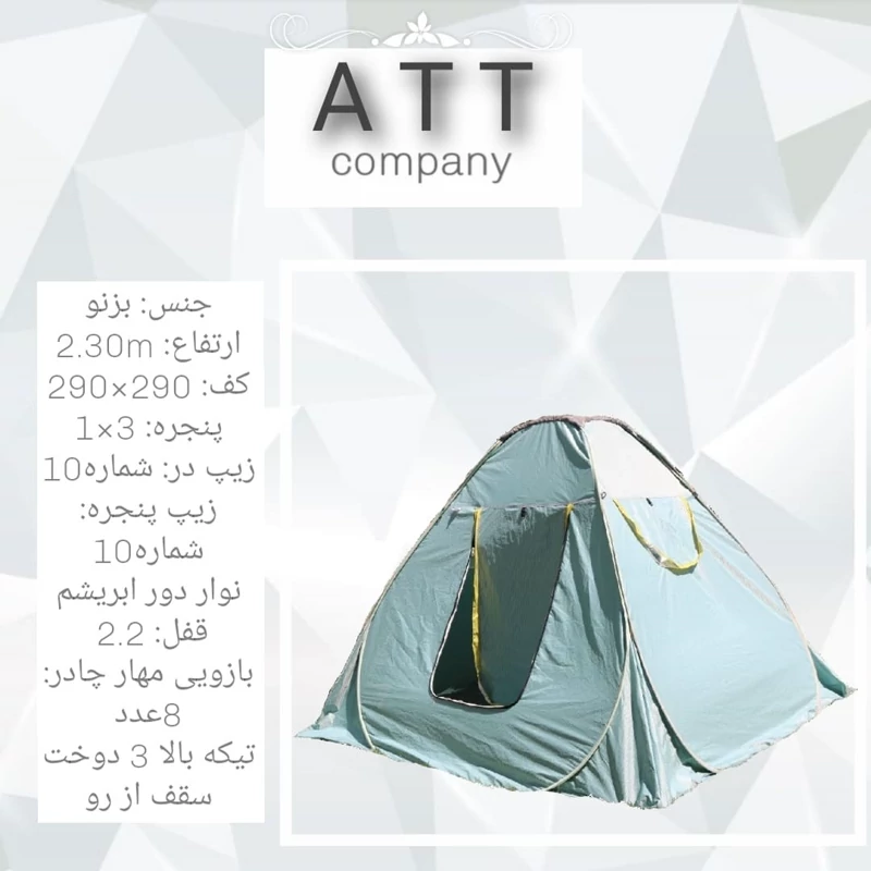 چادر مسافرتی خیمه 2 در 3 جنس برزنتی همراه با جای لوله بخاری کپی 2 کپی