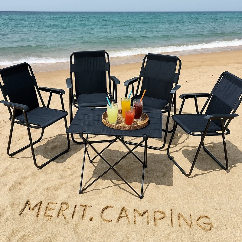ست صندلی ساحلی تاشو مسافرتی دسته مبلی 4نفره فوم دار دسته بسیار مقاوم