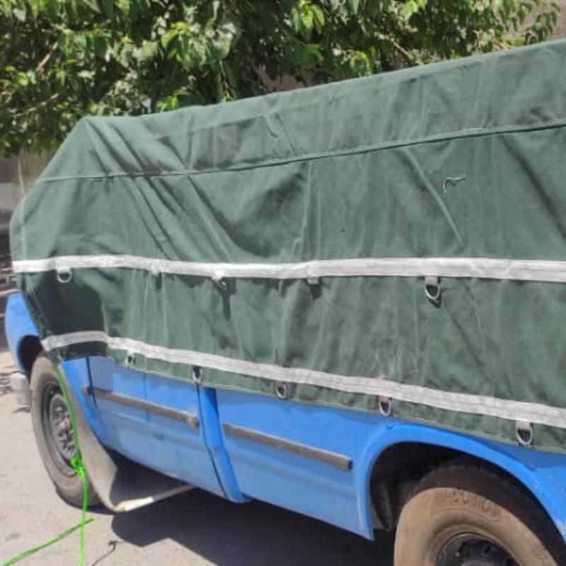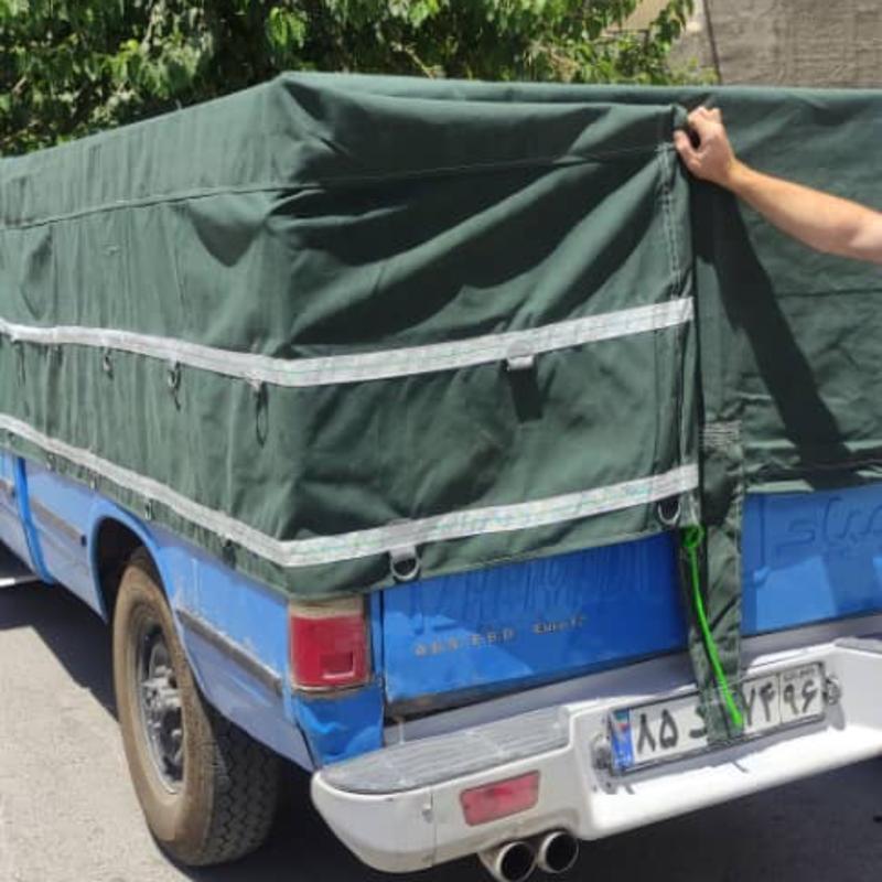 چادر نیسان برزنت ضد آب صد در صد ، سایز ۳ در ۴ مناسب باران شدید نگهدارنده بار شما ، دو ردیف قلای دور دوز با دم اسبی سفارشی دوز.