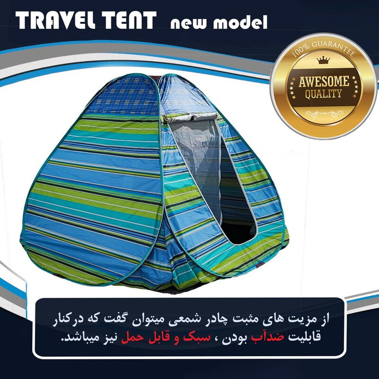 ✅ ✅ چادر نانو شمعی ضدآب ✅ ✅ از ویژگی بارز این محصول قابلیت ضدآب بودن میباشد و در عین حالی که این محصول ضدآب میباشد با توجه به جنس خاص پارچه به کار رفته سبک و قابل حمل نیز میباشد ✅ ✅ گزینه بسیار مناسب برای طبیعت گردی و هواخوری ✅ ✅ تهیه شده از پارچه نانو ضدآب / سبک / استفاده آسان / جابجایی بی دردسر ✅ ✅ عایق حرارتی نسبی و قابل استفاده در هوای سرد ✅ ✅ کیف درجه یک برزنتی یا جودان ✅ ✅ دارای یک عدد پنجره و یک عدد درب همراه با توری پشه بند ✅ ✅ دوخت تمیز و دقیق چادر مسافرتی 8 نفره اسکلتی (برنو)(ضخیم و سنگین) کیفیت و قیمت بی نظیر ، از کارخونه بخر مستقیم تضمین کیفیت و اصالت کالا این مدل چادر مسافرتی از بهترین متریال موجود و طراحی بروز تهیه شده است از جمله ویژگی های بارز این محصول ضدآب بودن و عایق حداکثری حرارتی می باشد نقطه قوت چادر های مسافرتی مدل فنری استفاده آسان و فوری و قابل حمل بودن می باشد چادر های مسافرتی اکنون به عضوی جدا ناشدنی از یک سفر تبدیل شده و همراه داشتن اش مشکلات سفر را تا حد بسزایی کاهش میدهد یکی از لوازم ضروری و پر مصرف برای یک سفر خاطره انگیز چادر مسافرتی می باشد. این چادر مسافرتی که دارای پنجره و هواکش می باشد ، می تواند در هنگام کمپینگ برای لذت بردن از طبیعت بسیار کارآمد باشد.جنس این چادر برنو و استحکام و دوام خوبی دارد.ضمنا ضدآب بودن آن باعث خواهد شد باران و رطوبت به آن وارد نشود. این چادر دارای یک کیسه که برای حمل آن در نظر گرفته شده است .این چادر فنری بوده و احتیاج به سرهم بندی ندارد و با خروج از کیسه خودبخود برپا می گردد. نکته مهم اینکه حمل این چادر با بند حمایل آن صورت میگیرد و کیسه ای دایره شکل دارد که برای کوهنوردی در مسیرهای طولانی مناسب نمی باشد. تذکر : چادر های اینگونه با ظرفیت اسمی بفروش میرسد ظرفیت واقعی این چادر برای خواب و استراحت راحت حداکثر 4 نفر می باشد ☆☆در صورت عدم انتخاب رنگ بصورت تصادفی ارسال می شود ، حتما از قسمت گفت و گو پیش از خرید از موجودی رنگ بندی کالا اطلاع یافته و سپس خریدتان را نهایی فرمایید.