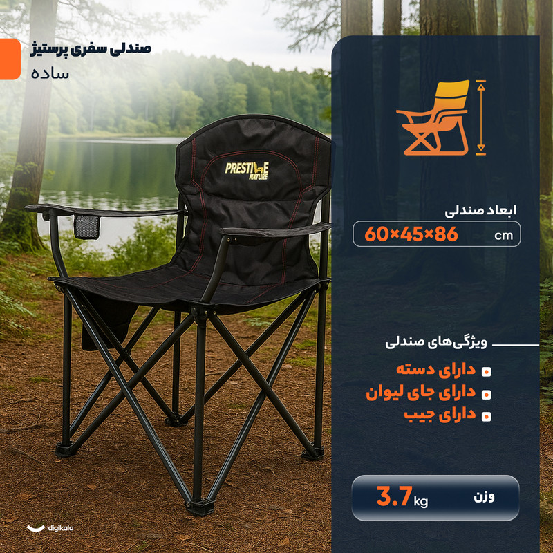 صندلی تاشو سفری پرستیژ مدل ساده ارتفاع پایه 86 سانتی متر