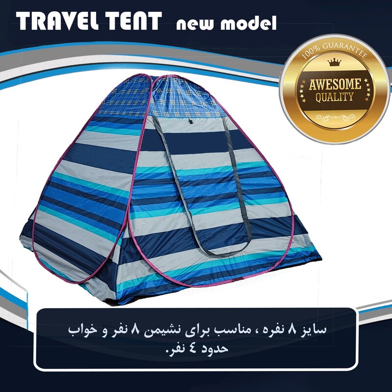✅ ✅ چادر نانو شمعی ضدآب ✅ ✅ از ویژگی بارز این محصول قابلیت ضدآب بودن میباشد و در عین حالی که این محصول ضدآب میباشد با توجه به جنس خاص پارچه به کار رفته سبک و قابل حمل نیز میباشد ✅ ✅ گزینه بسیار مناسب برای طبیعت گردی و هواخوری ✅ ✅ تهیه شده از پارچه نانو ضدآب / سبک / استفاده آسان / جابجایی بی دردسر ✅ ✅ عایق حرارتی نسبی و قابل استفاده در هوای سرد ✅ ✅ کیف درجه یک برزنتی یا جودان ✅ ✅ دارای یک عدد پنجره و یک عدد درب همراه با توری پشه بند ✅ ✅ دوخت تمیز و دقیق چادر مسافرتی 8 نفره اسکلتی (برنو)(ضخیم و سنگین) کیفیت و قیمت بی نظیر ، از کارخونه بخر مستقیم تضمین کیفیت و اصالت کالا این مدل چادر مسافرتی از بهترین متریال موجود و طراحی بروز تهیه شده است از جمله ویژگی های بارز این محصول ضدآب بودن و عایق حداکثری حرارتی می باشد نقطه قوت چادر های مسافرتی مدل فنری استفاده آسان و فوری و قابل حمل بودن می باشد چادر های مسافرتی اکنون به عضوی جدا ناشدنی از یک سفر تبدیل شده و همراه داشتن اش مشکلات سفر را تا حد بسزایی کاهش میدهد. یکی از لوازم ضروری و پر مصرف برای یک سفر خاطره انگیز چادر مسافرتی می باشد. این چادر مسافرتی که دارای پنجره و هواکش می باشد ، می تواند در هنگام کمپینگ برای لذت بردن از طبیعت بسیار کارآمد باشد.جنس این چادر برنو و استحکام و دوام خوبی دارد.ضمنا ضدآب بودن آن باعث خواهد شد باران و رطوبت به آن وارد نشود. این چادر دارای یک کیسه که برای حمل آن در نظر گرفته شده است .این چادر فنری بوده و احتیاج به سرهم بندی ندارد و با خروج از کیسه خودبخود برپا می گردد. نکته مهم اینکه حمل این چادر با بند حمایل آن صورت میگیرد و کیسه ای دایره شکل دارد که برای کوهنوردی در مسیرهای طولانی مناسب نمی باشد. تذکر : چادر های اینگونه با ظرفیت اسمی بفروش میرسد ظرفیت واقعی این چادر برای خواب و استراحت راحت حداکثر 4 نفر می باشد ☆☆در صورت عدم انتخاب رنگ بصورت تصادفی ارسال می شود ، حتما از قسمت گفت و گو پیش از خرید از موجودی رنگ بندی کالا اطلاع یافته و سپس خریدتان را نهایی فرمایید.