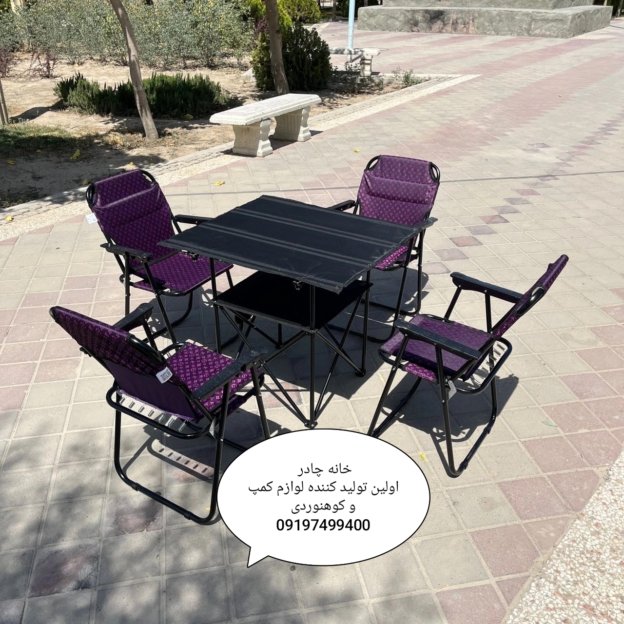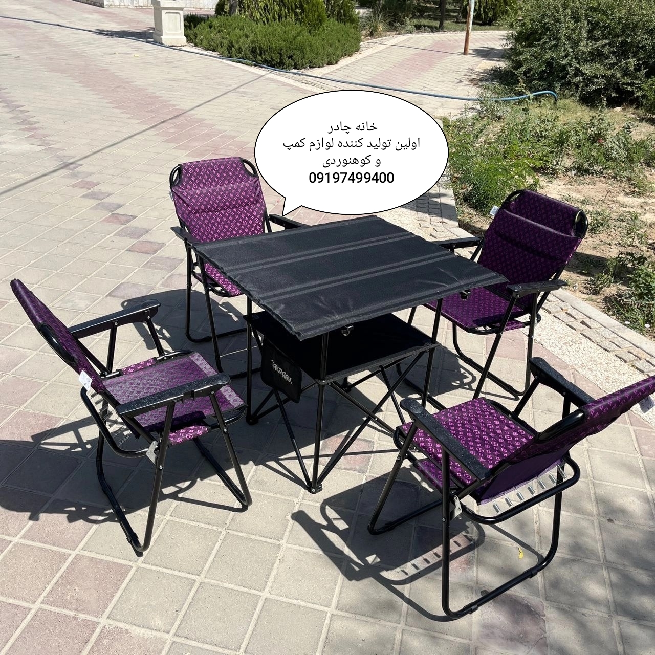ست چهار4نفره میز و صندلی مسافرتی درجه یک محصول خانه چادر با میز دوطبقه و تحمل وزن بالا