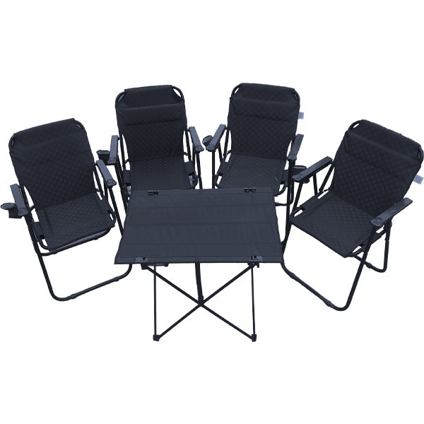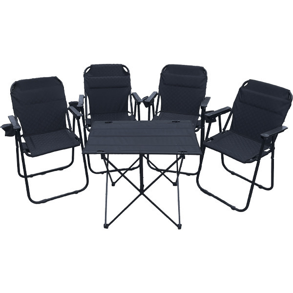 ست میز و صندلی همراه با جای لیوانی، کیفیت بسیار بالایی دارد. متریال میز این ست آلومینیوم است که مقاومت بالایی در برابر رطوبت دارد. صندلیهای به کار رفته در این ست فومدار پلاس بوده و دارای ۹ عدد فنر میباشند.