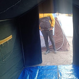 چادر مسافرتی خیمه 2 در 3 جنس برزنتی و لوله گاز همراه با جای لوله بخاری