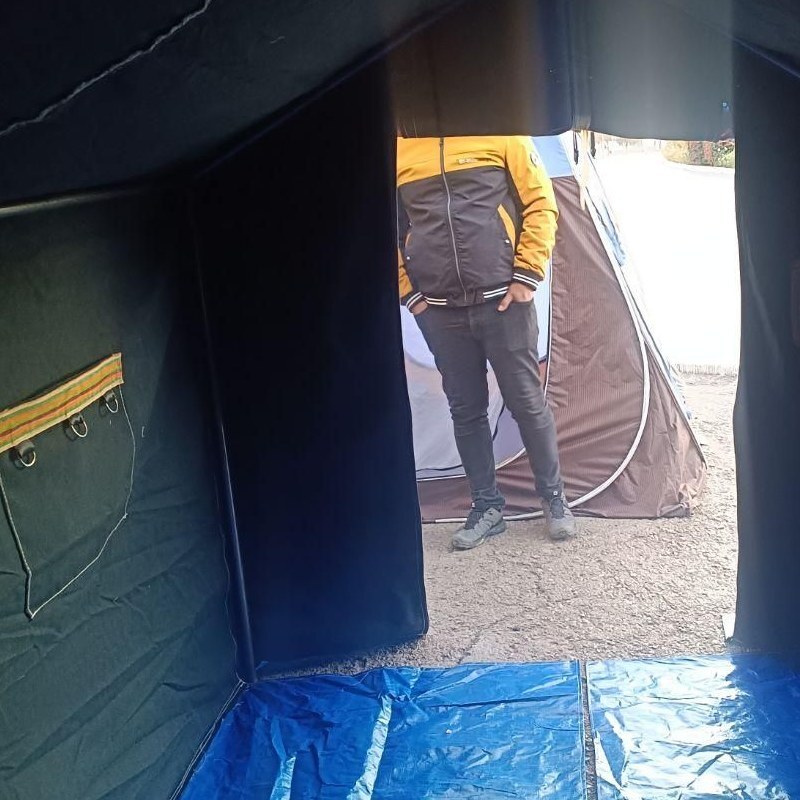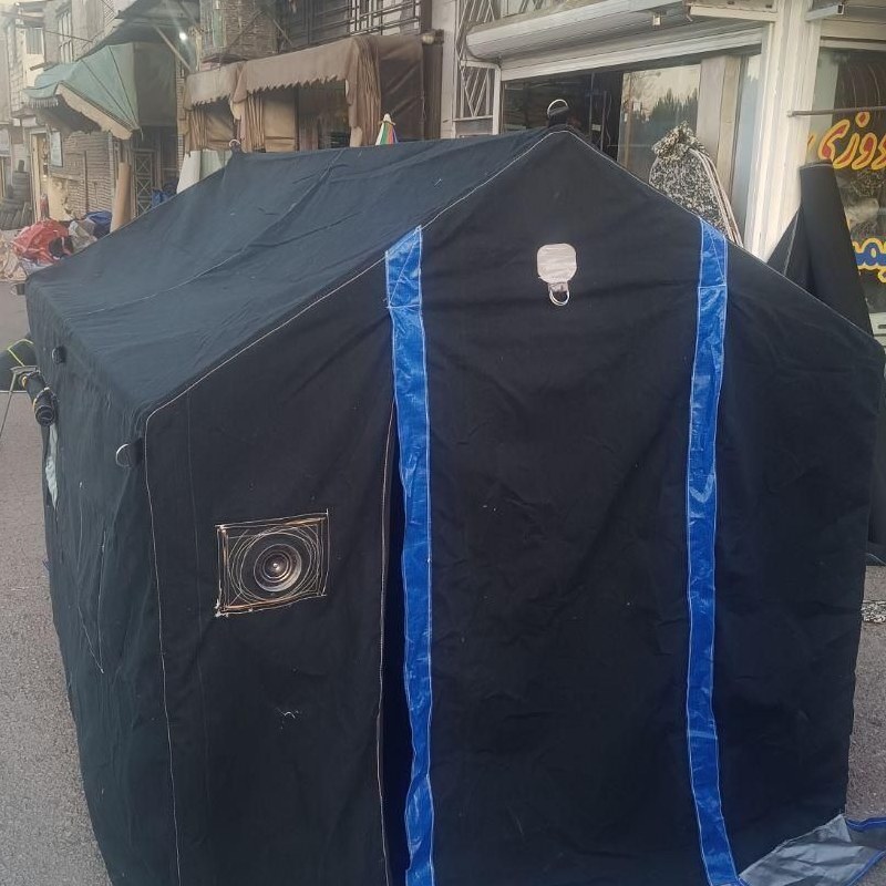 چادر مسافرتی خیمه 2 در 3 جنس برزنتی و لوله گاز همراه با جای لوله بخاری