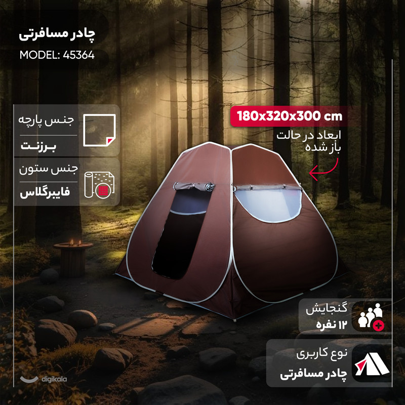 ارتفاع داخلی چادر : 180 سانتیمتر