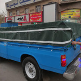 چادر نیسان برزنت ۹ لایه ی اصلی با دو ردیف قلاب و دم اسبی رایگان صد در صد ضد آب مناسب باران شدید و نگهدارنده بار شما، سایز ۴ در ۵