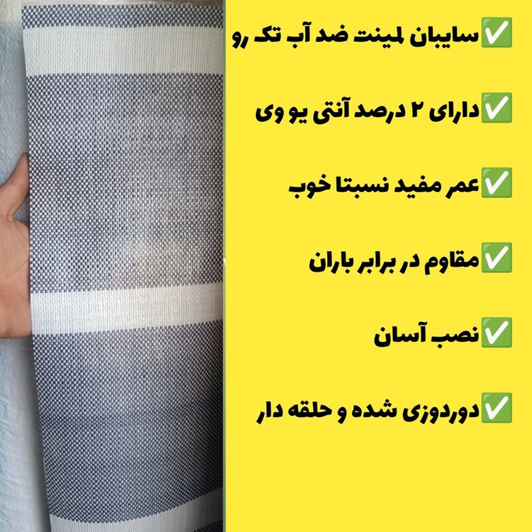 سایبان ضد آب لمینت (ابعاد 8 در 4 ) دوردوزی شده و حلقه دار آماده نصب