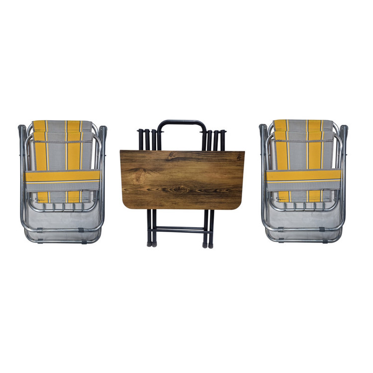 سفر برای داشتن روحیه سالم و سیستم روانی ما امری ضروریست. با توجه به زندگی پرتنش امروزی و گرفتاری انسانها در چالش روزمرگی، انرژی زیادی از انسان تلف میشود. برای بازیابی این انرژی از دست رفته، انسانها نیاز به گذراندن زمانی در طبیعت و سفر دارند. برای تجربه یک سفر خاطره انگیز در دل طبیعت، شما نیاز به تهیه تجهیزات مسافرتی دارید. یکی از این تجهیزات که باعث میشود شما به طبیعت نزدیک تر شده و هیجان بیشتری را تجربه کنید، میز و صندلی سفر است. استفاده از میز و صندلی سفری در کمپینگ بسیار نیاز خواهد بود. برای تهیه یک میز و صندلی خوب باید به یک سری از فاکتورها توجه کرد. مقاومت و تحمل وزن بالا و داشتن خاصیت تاشو بودن از جمله این ویژگیها است. میز و صندلی سفری مدل J2 مجموعه 3 عددی دارای جنس فلز و چوب بوده و شامل دو صندلی و یک میز سفری است. این محصول خاصیت تاشو و کم جا بودن را داراست. با تهیه این مجموعه شما میزی با جنس mdf( ام دی اف) در اختیار خواهید داشت که دارای صندلیهای تاشو با مقاومت بالا و تحمل وزن سنگین خواهد بود.