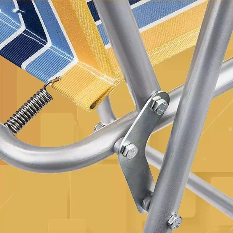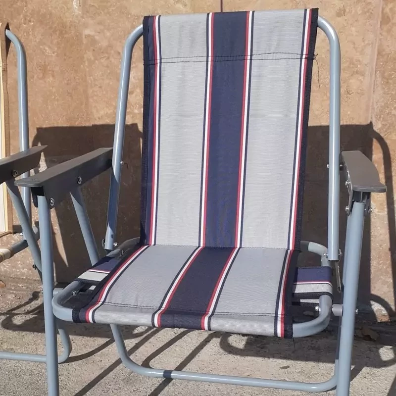 یکی از بهترین راههای نشستن، حالتی است که کمر نسبت به نشیمنگاه مقداری زاویه داشته باشد تا فشار کمتری به کمر وارد شود. با توجه به تمام این مسائل، این صندلی ساحلی را به گونهای طراحی و تولید کردهاند که با استفاده از آن در زمان سفر، بتوان راحتی بیشتری را تجربه کرد. افرادیکه دچار زانو درد، پا درد، کمر درد و … دارند و در هنگام نشستن این درد تشدید میشود پیشنهاد میشود روی مبل بنشینند. اغلب این افراد برای سفر ویا بیرون شهر به دلیل نداشتن راحتی سفر خود را لغو میکنند. این صندلی مبلی جنس رویه آن از برزنت و جنس پایههای آن گالوانیزه بوده که تا وزن 120 کیلوگرم را تحمل میکند. این راحت نشین با پایه را میتوان به راحتی جمع کردبه دلیل وزن کم(2.700کیلوگرم) و زیبایی و در سفر به همراه برد. ابعاد این صندلی در حالت باز 41*51 سانتیمتر با ارتفاع 96 سانتیمتر و ابعاد در حالت بسته 78*52 سانتیمتر با ضخامت 8 سانتی میباشد. طول دسته های این صندلی مبلی تاشو 32 و عرض آن 4 سانتی متر که میتوان در هنگام نشستن و برخاستن از این دسته کمک گرفت